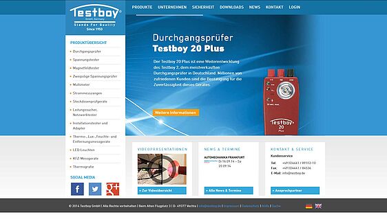 Dank modernster Fertigungstechnologien hat sich die Testboy GmbH zu einem der führenden Hersteller für robuste und professionelle Mess- und Prüfgeräte entwickelt. Ihre TÜV-/GS-geprüften, anwenderfreundlichen und langlebigen Produkte sind unter den Markenzeichen „Testboy“, „Testavit“ und „Schuki“ international bekannt.
